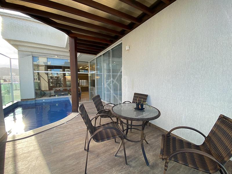 Cobertura duplex finamente mobiliada, decorada e equipada, 04 suítes sendo 01 com closet; Living; Sala de estar; Sala de jantar; lavabo; Cozinha; área gourmet com churrasqueira a carvão; Área de serviço; Área externa com piscina; 235m² privativo; 04 vagas de garagem individuais;