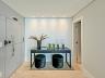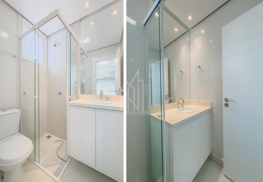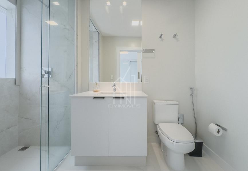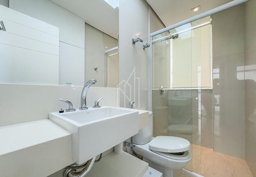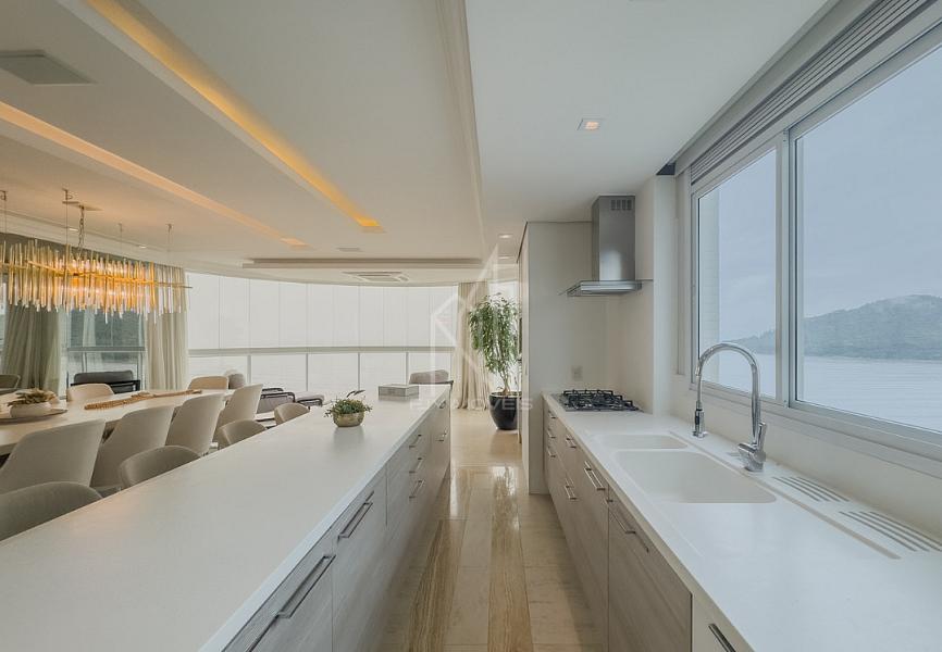 São 3 amplas suítes, sendo duas delas com vista para o mar, proporcionando a sensação de estar em um paraíso particular. O living é integrado, unindo sala de estar, jantar e cozinha de forma harmônica, com acabamentos de altíssimo padrão. Completa o piso inferior uma área de serviço e lavabo, todos com um design moderno e funcional.