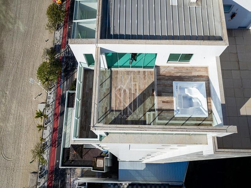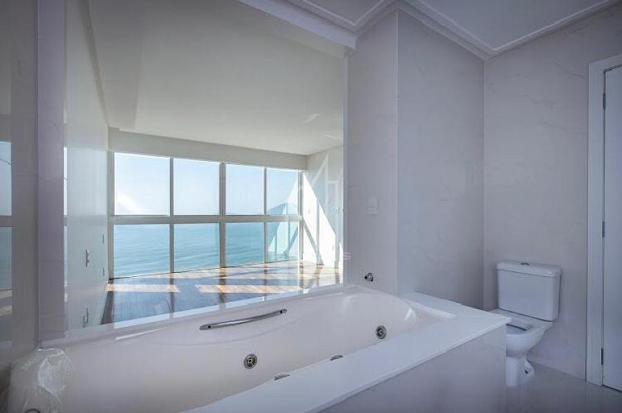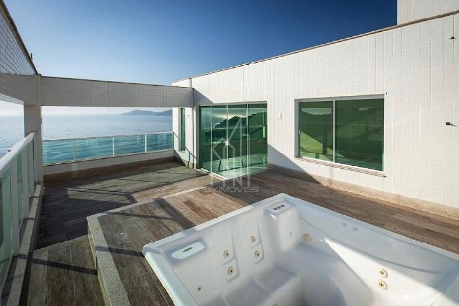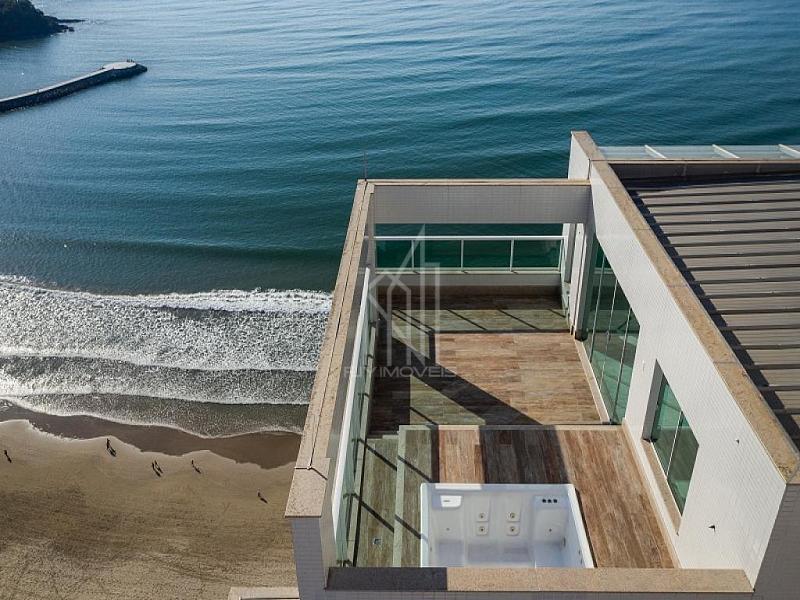 FRENTE MAR Cobertura duplex no Edifício Saveiro Residence, 242m² privativos, 03 suítes sendo uma master, dependência de empregada, sala de estar e jantar, espaço gourmet com churrasqueira a carvão, terraço aberto com jacuzzi, cozinha, área de serviço e 08 vagas de garagem.