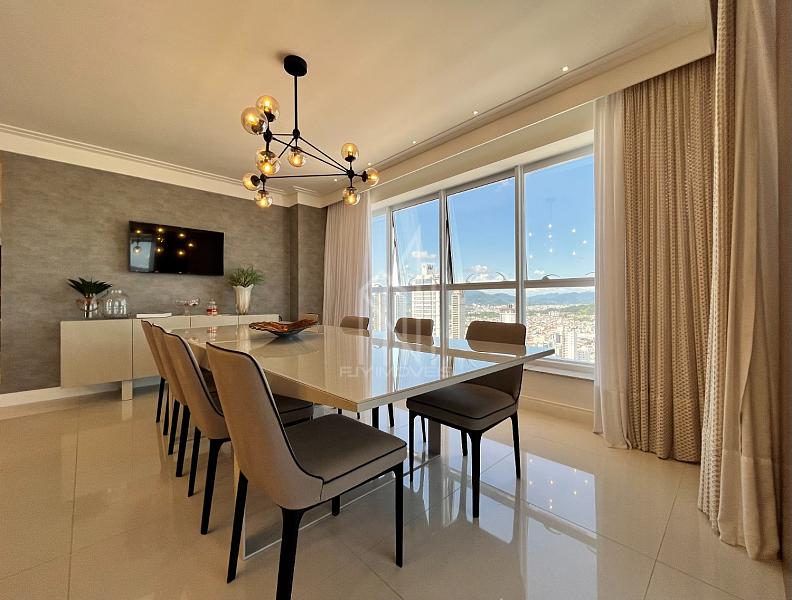 [PENTHOUSE] Apartamento Unificado no Edifício Dalcelis da Construtora Embraed, 316m² privativos, 04 suítes sendo umas master, living em três ambientes, cozinha integrada, área de serviço separada, vista panorâmica da cidade e do mar, sacada, finamente mobiliada e decorada, no coração de Balneário Camboriú e ainda com 04 vagas de garagem privativas